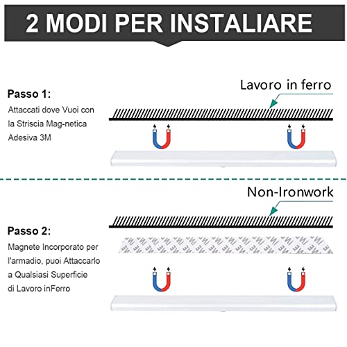 💡Easy installation : Lorsque la zone à utiliser est en fer, le luminaire d’armoire à LED peut être fixé directement sur celle-ci. Lorsque la zone d’utilisation n’est pas en fer (armoire en bois), l’éclairage de l’armoire peut être fixé à la zone d’utilisation à l’aide de la bande magnétique 3M incluse dans l’emballage