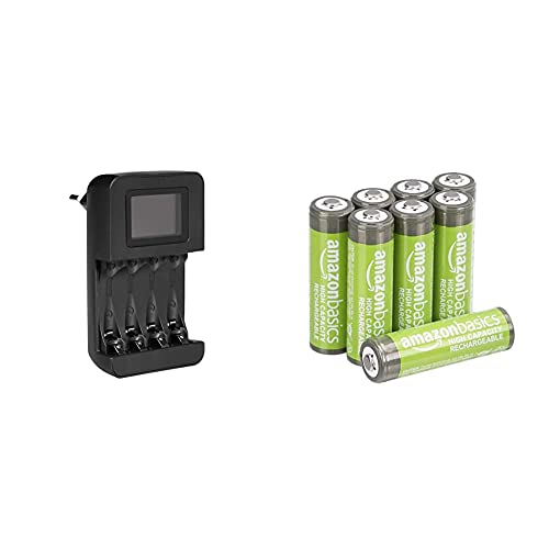 Amazon Basics Chargeur de piles numérique et intelligent, pour 4 piles AA, AAA