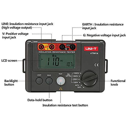 250V, 0.00MO ~ 99.9MO, ± (3% + 5), 100MO ~ 5.0GO, ± (5% + 5)