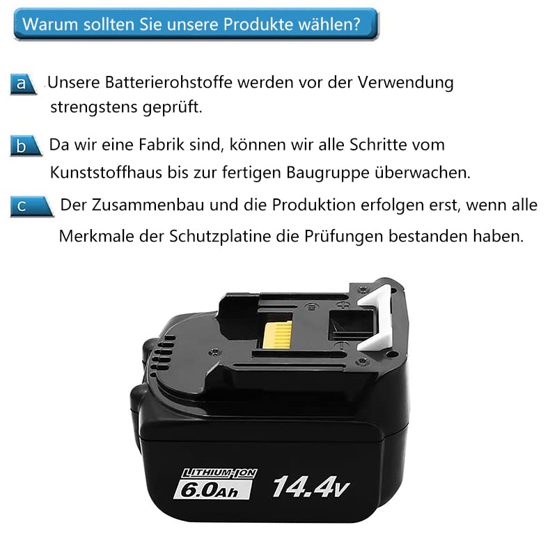Batterie de remplacement pour Makita 14.4V Li-Ion batterie L1430 BL1415 BL1440 BL1415N 196875-4 194558-0 195444-8 196388-5 194065-3 etc.