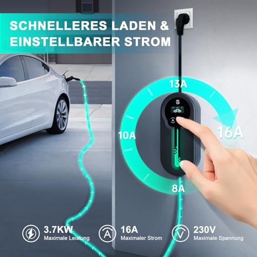 Beny Chargeur Voiture Electrique Type 2, 3.68KW 8-16A Cable Recharge Voiture Electrique Commutable 6m avec écran OLED, Minuterie Réglable Wallbox Borne de Recharge avec Sac de Transport (6m)