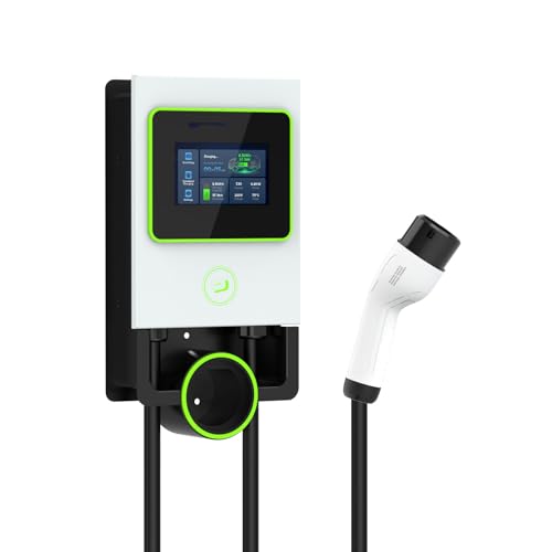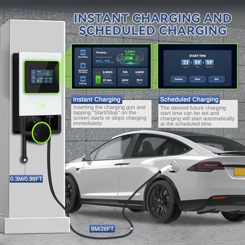 Borne Recharge Voiture Electrique 7KW avec Mode de Charge Programmée, Station de Charge pour VE à éCran Tactile, Charge Véhicule Ãlectrique Monophasé 0-32A, 6 Langue, Câble 8M, 2 RFID