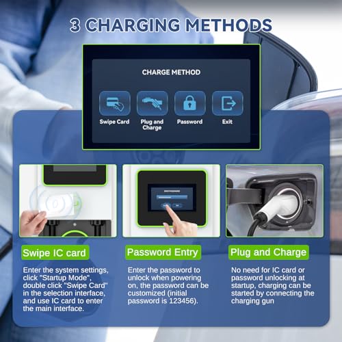 3 Modes de déverrouillage – 1) Chargement direct sans déverrouillage. 2) Déverrouillage par carte : la station de charge EV est équipée d’une carte 2*IC, qui peut être utilisée pour démarrer et arrêter la station de charge. 3) Déverrouillage par code : (le mot de passe initial est 123456). Le déverrouillage par carte et le verrouillage numérique permettent non seulement de sécuriser les accessoires à l’intérieur de la boîte, mais aussi d’empêcher l’accès non autorisé et le vol.