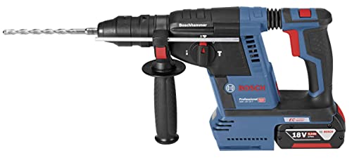 Bosch – Perforateur Burineur SDS PLUS à batterie 18V 6Ah Li-Ion – GBH18V-26F Les avantages du perforateur burineur Bosch GBH18V-26F sont les suivants: – Ce perforateur burineur SDS plus 18V 6Ah GBH18V-26F, posséde plus de puissance, il apporte plus de confort de travail et moins de poussière – Moteur EC sans charbon : Compact, protégé contre les poussières, léger et sans aucun entretien – Vibration Control : Poignée découplée pour un travail sans fatigue – Meilleure maîtrise grâce à l’électronique de contrôle de précision EPC – Grande autonomie : Jusqu’à 216 trous dans le béton 6 x 40 mm par charge de batterie – 50 % de puissance en plus avec la force de frappe d’un outil filaire pour un travail rapide et flexible, cela par rapport au modèle antérieur GBH 18 V-EC – Mandrin interchangeable pour passer rapidement du mode perçage avec percussion dans le béton au mode perçage sans percussion dans le bois et le métal – Éclairage LED : Visibilité optimale du trou de perçage – Conception ergonomique : Transmission optimale du couple dans le sens horizontal entre l’outil et le trou de perçage – Électronique de protection des cellules ECP : Protège la batterie contre la surchauffe, la surcharge et la décharge complète – Batteries CoolPack innovantes : Garantissent une dissipation optimale de la chaleur et prolongent la durée de vie jusqu’à 100 %, par rapport aux batteries Lithium-Ion sans CoolPack – Absence d’effet mémoire : La batterie peut être chargée à tout moment, indépendamment de l’état de charge, sans aucun endommagement des cellules – Temps de charge très court : La batterie retrouve 80 % de sa charge en 35 min Caractéristiques techniques du perforateur burineur Bosch GBH18V-26F : Plage de perçage : – le béton avec forets pour perforateur: Ø 4 – 26 mm – plage d’utilisation optimale dans le béton: Ø 8 – 16 mm Perçage maxi. dans – l’acier: 13 mm – le bois: 30 mm Porte-outils SDS-plus Force de frappe, maxi: 2.6 J Fréquence de frappe à vitesse de rotation: 0 – 4.350 cps/min Vitesse de rotation nominale: 0 – 890 tr/min Batterie: Li-Ion 18V 6Ah Poids avec batterie: 3,6 kg L.378 x h.225 mm Perforateur burineur Bosch GBH18V-26F livré avec : – 2 Batteries lithium-ion: 18V 6Ah – Chargeur rapide GAL 1880 CV – Butée de profondeur 210 mm – Mandrin automatique interchangeable – Mandrin interchangeable SDS-plus – Poignée supplémentaire – Chiffon – L-BOXX 136 empilable et clipsable Garantie 1 an