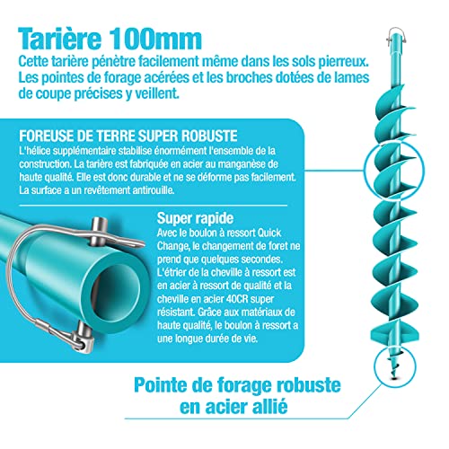 BRUNNENTAL ® Perceuse de terre 100mm – Idéal pour les travaux d’excavation – Perceuse de pieux – Pointe de foret robuste 100 mm – Utilisation facile