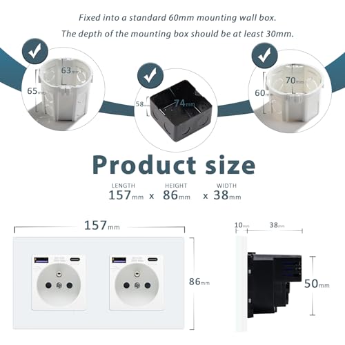 【BONNE QUALITÉ】 :Prises Française est fabriquée en ABS ignifugé et en panneau tactile étanche en cristal trempé. Chaque prise est rigoureusement testée par le contrôle qualité. Elle garantit toujours une bonne sensation d’utilisation après des milliers de branchements et de débranchements.