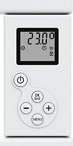 Cœur de chauffe : sans fluidecorps: aluminium boitier de commande : Electronique affichage : digital programmation: hebdomadaire : 9 programmes personnalisables fonctions: Arret, hors gel, ECO, confort, programmation reglage de la temperature de 13° C à 30 °C PRECISION 0,1°C fil pilote 6 ordres securité thermique à sarmement automatique manchons réglables en hauteur et verrouillage coloris : Blanc alimentation : monophasé 230V – 50H