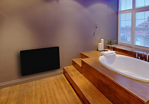 Panneau rayonnant électrique format horizontal et plat cœur de chauffe : panneaux rayonnants en aluminium châssis / carrosserie : acier laqué / verre de sécurité́ thermostat électronique affichage digital fonctions : arrêt, Hors-gel, Eco, confort, programmation hebdomadaire, consommation, copilote®, écocitoyen, activité́, absence prolongée, verrouillage parental programmation : 7 programmes personnalisables mise à l’heure automatique réglage de la température de 13°c à 30°c précision de la régulation à 0,1°C fil pilotes 6 ordres : arrêt, hors gel, confort, confort-1, confort-2, Eco sécurité́ thermique à réarmement automatique et sécurité́ anti-bascule ment fixation murale : dosseret en h verrouillage – coloris : Noir alimentation : monophasé́ 230V~ 50Hz