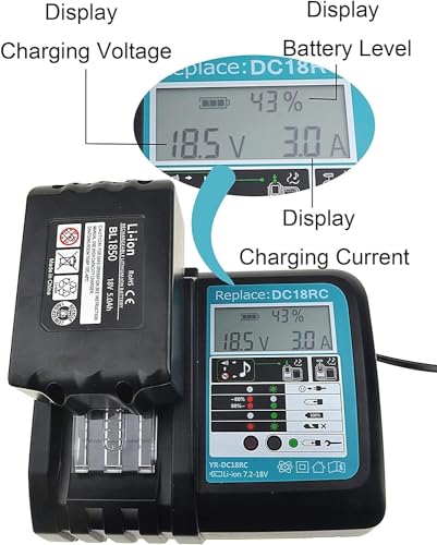【Spécification du chargeur】 Tension de sortie : 14,4 V~18 V, Courant de charge : 3 A, Remplacement du chargeur de batterie DC18RC, compatible avec les batteries lithium-ion 14,4 V-18 V (BL1830 BL1840 BL1850 BL1860 BL1815 BL1430 BL1450 BL1440, et plus encore