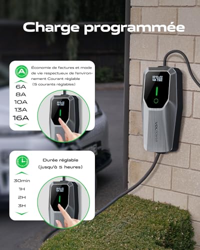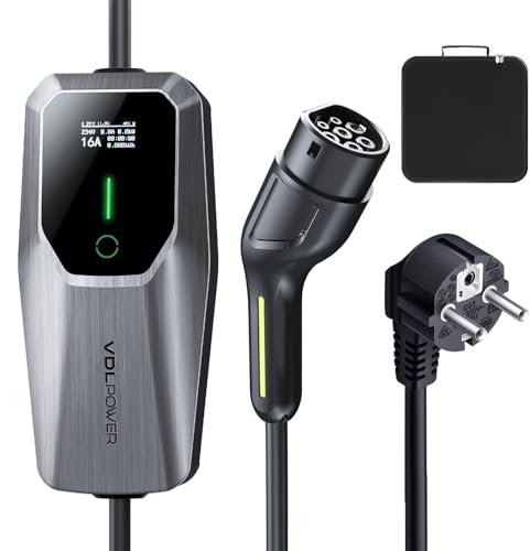 VDLPOWERVP Chargeur Voiture Electrique, 3.6KW EV Chargeur Type 2, Courant réglable 6/8/10/13/16A, 5M Cable Recharge Véhicule Electrique avec EU Schuko, Borne de Recharge Monophasé IP65 (EC11-3.68KW)