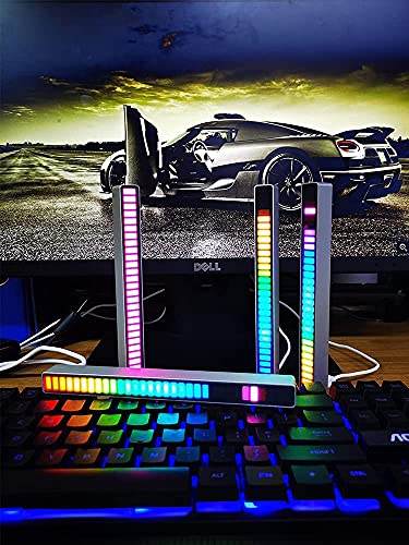 Chulovs Lumière rythmique RVB sans fil à commande vocale, indicateur de niveau de musique 32 bits Barre en aluminium Contrôle du son par la voix Spectre audio Lumière LED RVB (Black)