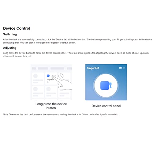Touch Control : Le bouton physique permet d’activer le Fingerbot sans utiliser votre téléphone. Placez votre doigt sur le bouton au moins 0,1 s. Le Fingerbot sera déclenché.