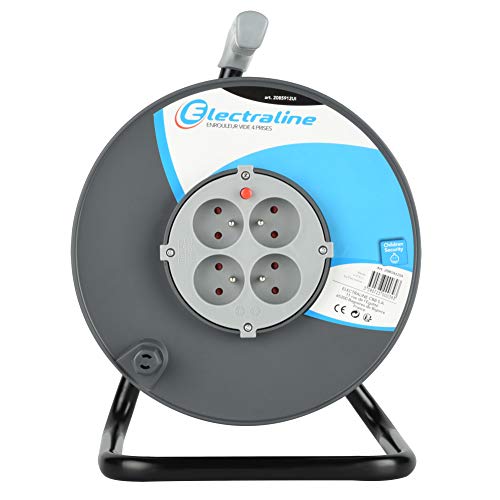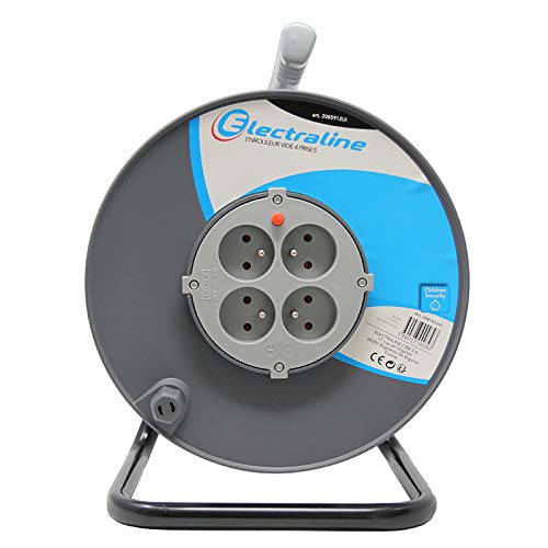 Enrouleur Bricolage VIDE (capacité 50m), 4 prises 16A. Electraline Group was born in the late 90’s through the acquisition of companies that operated in the production and distribution of electrical materials for the mass distribution of DIY and Food branches.Electraline Group endorsed the experiences of its subsidiaries, operating in the direction to specialize as much as possible in the production units but also seeking to leave the flexibility to provide high customer service.All of our products comply with the current regulations in all countries where they are produced and commercialized.