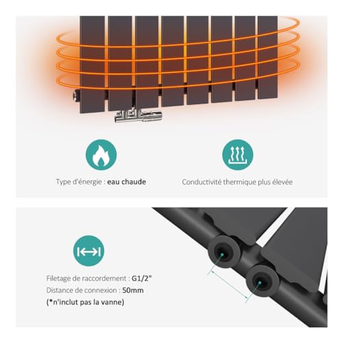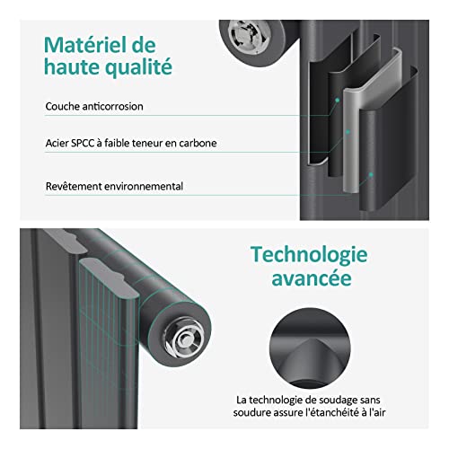 Matériau : le radiateur est fabriqué en acier SPCC de haute qualité, conforme à la norme BS EN 442 et certifié CE. Couleur : Anthracite (différents moniteurs ont une différence de couleur.)