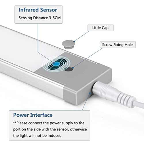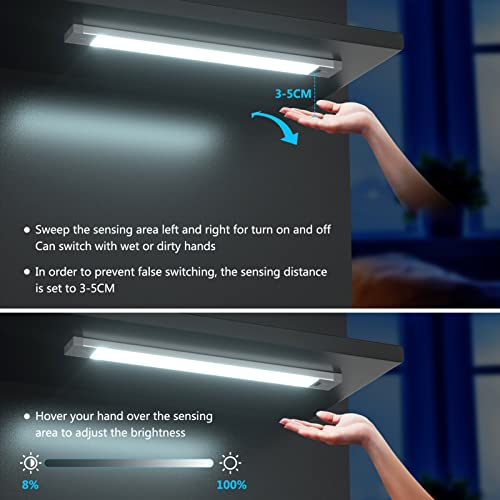 Activation par detecteur — Cette lampe d’armoire à led a un interrupteur à induction sans contact allumé et éteint, angle détectable de 120 °, pour éviter les contacts erronés, la distance d’induction est de 3 à 5 cm. Commutez en agitant votre main vers la gauche et la droite de la zone de détection, facile à utiliser et à contrôler avec une main humide et sale, pour votre confort et votre sécurité d’utilisation au travail ou pendant la cuisson.