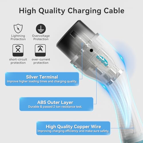 CÂBLE DE CHARGE RAPIDE : Avec un câble de charge EV de type 2, une charge stable et rapide est possible à une tension nominale de 250V(AC) en monophasée avec une puissance maximale allant jusqu’à 7.2 kW. Comparé à d’autres câbles, EVPEIWE type 2 câble de recharge pour véhicule électrique est la solution de recharge la plus légère et la plus efficace que nous ayons jamais proposée à nos utilisateurs.