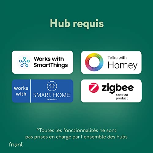 HUB REQUIS : Ce Zigbee frient requiert un hub pour se connecter à votre système domotique. Le Intelligent Smoke Alarm fonctionne avec Homey, SmartThings et Smart Home by Hornbach. Toutes les fonctionnalités ne sont pas prises en charge par l’ensemble des hubs