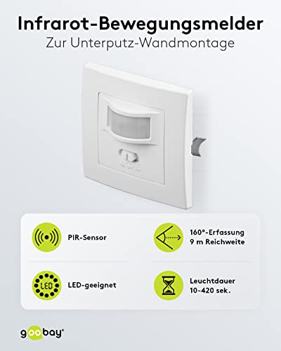 Pour montage mural encastré; 160° détection, 9 m distance, utilisation intérieur (IP20), adapté aux LEDs.