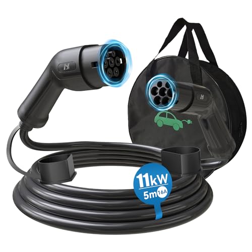 HiEVcar Chargeur Voiture Electrique Type 2, Borne de Recharge Vehicule Electrique, Cable Recharge Voiture Electrique pour véhicule électrique (VE) 16A 11 kW triphasé de 5 mètres pour VE EV/PHEV