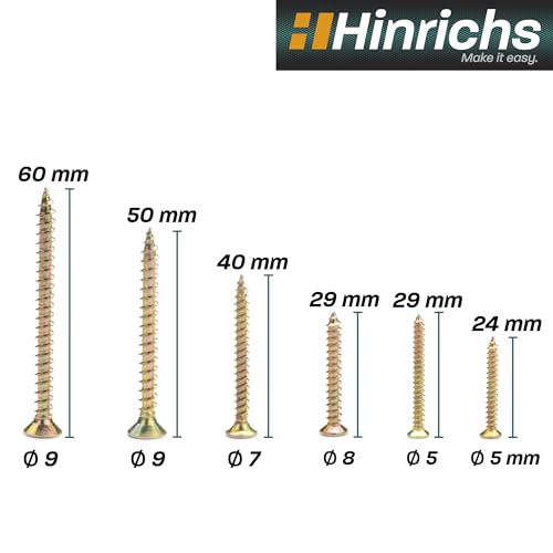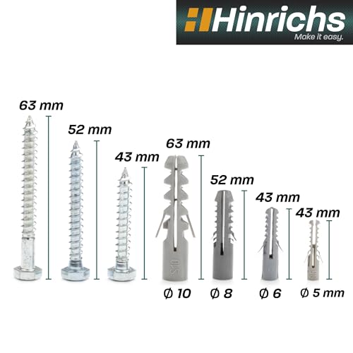 HInrichs Kit de Vis et Cheville 417 Pièces â Boite avec 204 Cheville Beton de 4 Tailles + 213 Vis de 9 Tailles â Vis Placo
