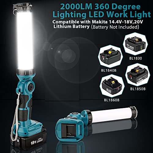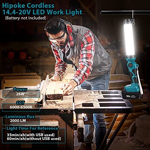 [lampe de travail LED multifonction] lampe de poche sans fil hipoke 26w avec une luminosité maximale de 2000 lumens, compatible avec Makita 14.4v-18v, batterie au lithium 20v bl1430, bl1440, bl1450, bl1460, bl1815, bl1830, bl1840, bl1850, bl1860, bl1430b, bl1460b, bl1830b, bl1850b, bl1860b, Utilisez des appareils électroniques lorsque vous travaillez sur un chantier. (batterie non incluse).