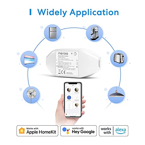 Meross Interrupteur Connecté, Interrupteur WiFi Intelligent Compatible avec HomeKit, Siri, Alexa, et Google Home, 10A DIY Commutateur avec Commande Vocale, Contrôle à Distance, Fonction du Temps
