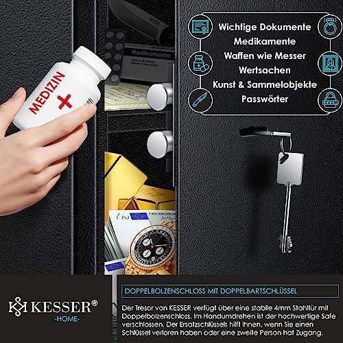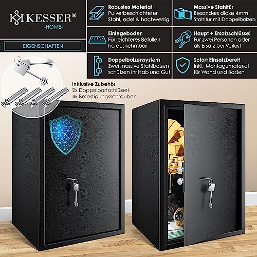 KESSER® Coffre-fort de meubles avec serrure à double panneton, coffre-fort Armoire à monnaie Coffre-fort mural au sol 35 x 50 x 31 cm avec 2 x clés et vis de fixation