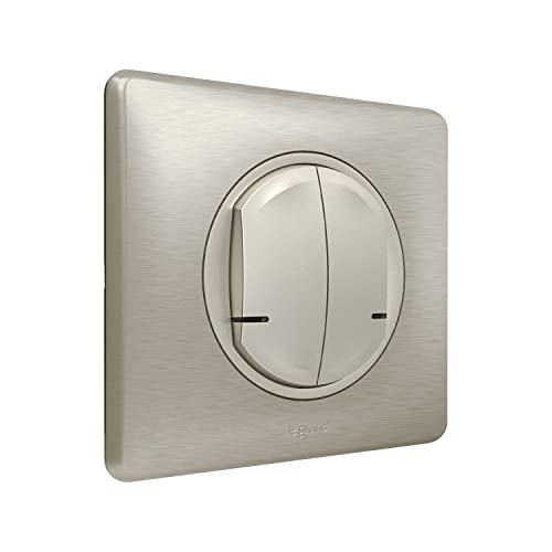 Legrand – Interrupteur double sans fil pour installation connectée Céliane with Netatmo avec plaque Métal Titane