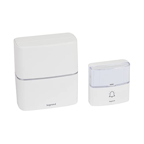 Kit complet Comprend un carillon carré et une sonnette carrée IP 54 avec porte-étiquette Fonction Mute carillon Flash incorporé Personnalisation sonnerie via MP3 (software de dimensionnement de mélodie MP3 fourni dans mémoire interne du carillon + cordon USB Inclus) Batterie sonnette CR2032 incluse Piles 1.5V AA pour carillon non incluses Fiabilité garantie Portée d’environ 200 m en champ libre Signal lumineux sur le carillon pour signaler un niveau de batterie faible Installation Installation récepteur : mural / posé Installation émetteur : avec vis / avec adhésif / posé à plat Caractéristiques techniques du kit carillon radio Sérénité de Legrand – 094270 : Données techniques du carillon : Niveau sonore : +/- 80 dB Réglage volume Nombre de sonneries : 30 Personnalisation sonnerie via MP3 (software de dimensionnement de mélodie MP3 fourni dans mémoire interne du carillon + cordon USB Inclus) Fonction mute carillon Flash incorporé Portée environ 200 m en champ libre Nombre de carillons additionnels illimité pour 1 sonnette Signal lumineux sur le carillon pour signaler un niveau de batterie faible Alimentation : – carillon : 3 batteries 1,5V AA (non incluses) – sonnette : 1 batterie CR2032 (incluse) Bande de fréquence : 433.05-434.79 MHz Niveau de puissance RF :