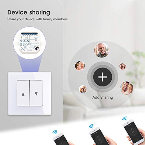 LoraTap 2 Interrupteur Module Volet Roulant Connecté, Commutateur Rideau Stores WiFi, Compatible avec Alexa Google Home pour Commande Vocale, Minuterie Intelligent Moteur Mural