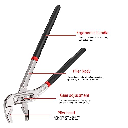 【Matériau de haute qualité】Pince plombier est fabriquée en acier à haute teneur en carbone, traité thermiquement pour résister à la corrosion et être très solide. La tête de la pince est composée de différentes dents de pince, ce qui peut empêcher efficacement le glissement, Poignée en plastique à double immersion,Vous êtes moins fatigué lorsque vous travaillez.