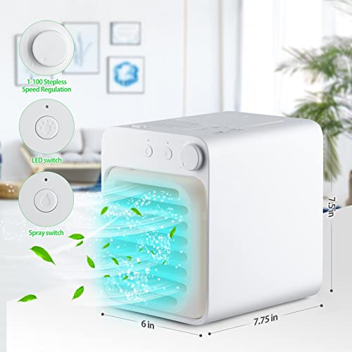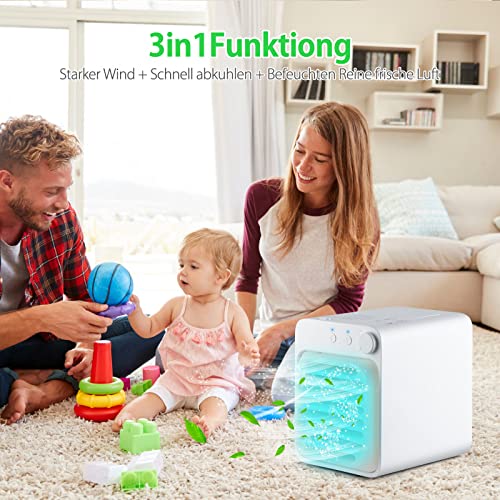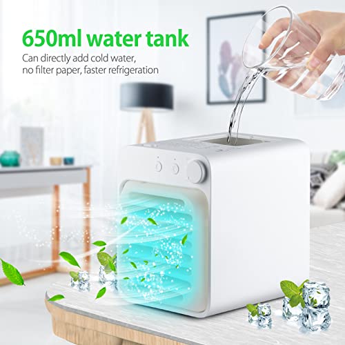 Refroidisseur d’air portable : ce refroidisseur d’air polyvalent comprend un refroidisseur d’air privé, un ventilateur, un humidificateur et une lumière ambiante LED. Le design 4 en 1 répond à tous vos besoins pour abaisser la température et purifier l’air. ★★ Ce climatiseur mobile est juste un climatiseur personnel. Il ne peut pas laisser toute la pièce refroidir.