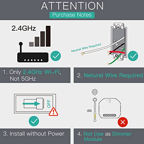 1.Module d’interrupteur Wi-Fi intelligent au design ultra-compact compatible avec les interrupteurs muraux au format britannique et européen ; sans aucune modification de votre décoration intérieure ; transforme les produits compatibles en appareils intelligents en quelques secondes seulement ; permet l’utilisation indépendante d’interrupteurs traditionnels sans interférences ; uniquement compatible avec les interrupteurs à bascule (voir l’image n° 2 pour plus de détails)