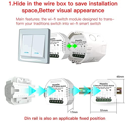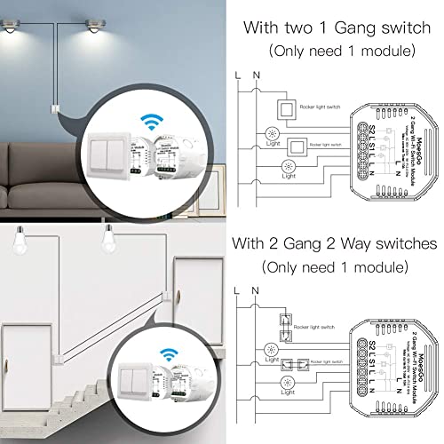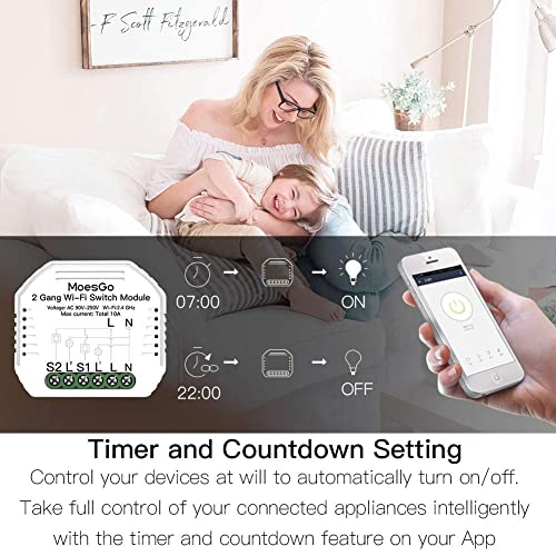 MoesGo WiFi Smart Switch Module pour télécommande sans fil et via l’application Smart Life/Tuya, compatible avec Alexa et Google Home, 2 Gang