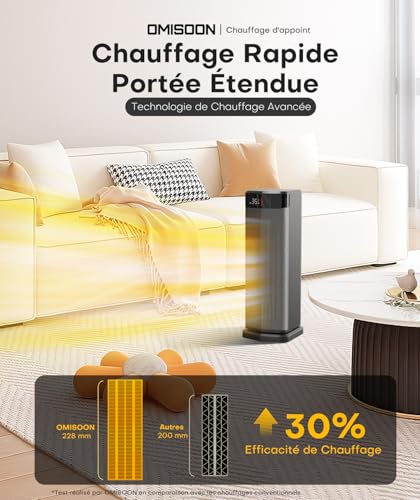 OMISOON Chauffage d’appoint, 2000W PTC Radiateur Electrique avec 4 Modes, Mode ECO, 90° Oscillation, Thermostat, Minuterie 24H, Télécommande, Protection Contre la Surchauffe et le Basculement