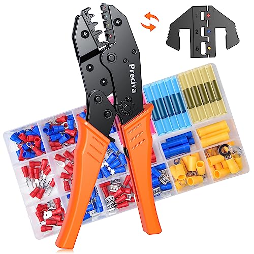 Pinces à Sertir pour Cosses Isolées et Thermorétractables, 2 Têtes de Sertissage Remplaçables avec 200 Connecteurs de Fil, AWG 20-10(0.5-6mm²), Outil de Sertissage à Cliquet Preciva
