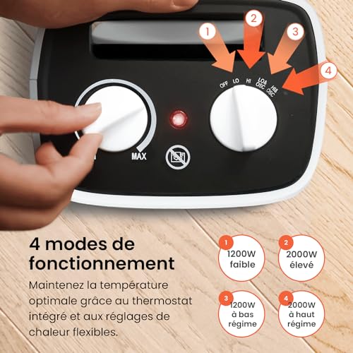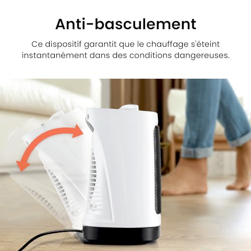 Protections intégrées : Ce radiateur portable est constitué de systèmes de sécurité avancés intégrés, avec protection en cas de surchauffe et une fonction arrêt automatique en cas de basculement.