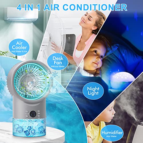 RenFox Climatiseur Mobile, Climatiseur Portatif, 4 en 1 Mini Refroidisseur d’air, Ventilateur, Humidificateur, 7 Couleurs LED, Personnel Refroidisseur d’espace pour le Bureau de Voyage à la Maison