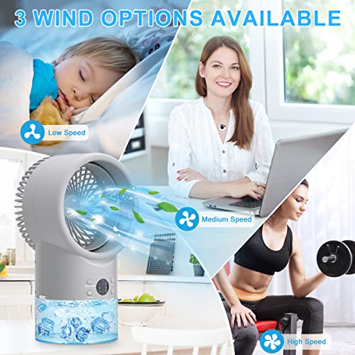 ❄⛄【3 vitesses de vent et 2 modes d’atomisation】 Les modes basse/moyenne/haute vitesse répondent à vos besoins, vous pouvez choisir la vitesse de vent la plus appropriée pour profiter de votre temps libre, de votre temps de sommeil ou de votre temps de travail. 2 modes d’atomisation de refroidissement, le ventilateur aspire l’air chaud, le convertit en air froid, puis pulvérise un brouillard d’eau ultra-fin par vibration ultrasonique à haute fréquence.