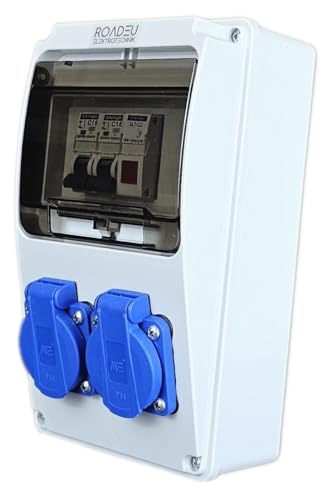 RoadEu – Répartiteur de Courant 230V – 2x Prises avec Disjoncteurs et Voyant LED rouge – Répartiteur de prises avec disjoncteurs C 16A