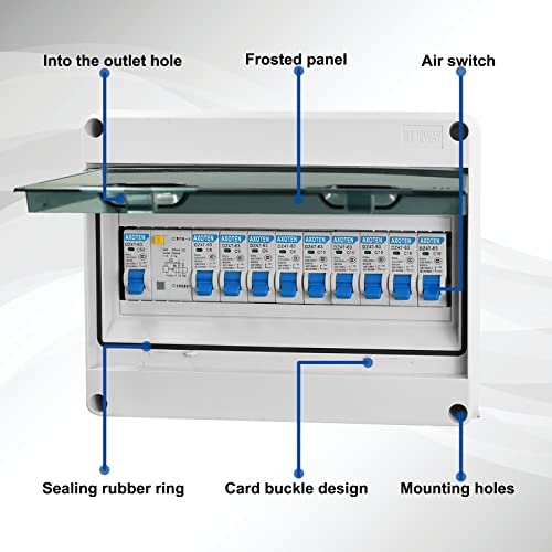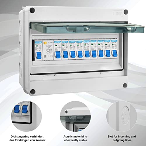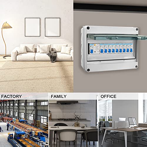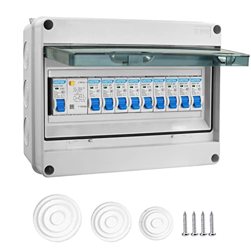 Simmpatuu Panneau de Disjoncteur d’unité de Consommateur à 4 Voies, Boîte de Disjoncteur de Fuite,Tableau Electrique Etanch,Disjoncteurs électriques 63A,Commutateur D’air 4x6A+3x10A+2x16A