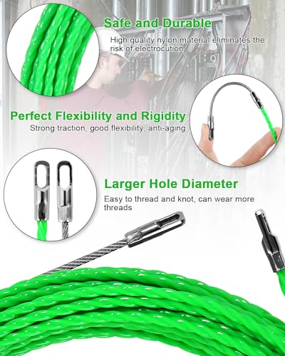Conception précise: Les têtes de câble en acier légères, solides et lisses sur les deux têtes permettent un passage facile à travers les câbles incurvés. La grande ouverture à tête plate vous fait gagner du temps lorsque vous travaillez car vous pouvez rapidement tirer le câble et tirer plusieurs fils. La spirale de filetage a une conception torsadée qui réduit la friction du tuyau et facilite la rotation.