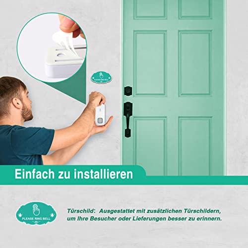 🎵【Facile à Installer】Il suffit de brancher le récepteur dans une prise et de fixer l’émetteur au mur ou au cadre de la porte à l’aide du ruban adhésif ou des vis fournies.Sans les tracas des câbles