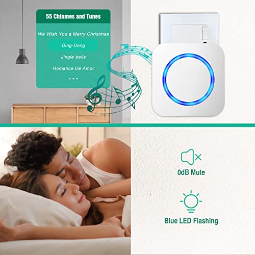 🎵【55 Mélodies et Volume 5 Niveaux】Récepteur de sonnette avec un son plein et clair ; appuyez sur le bouton de suivi ou de retour pour choisir entre les mélodies ; 5 réglages de volume avec un volume maximum de 110 dB ; profitez à chaque fois des sonneries agréables et belles lorsque quelqu’un est à la fois. sonnette de porte d’entrée