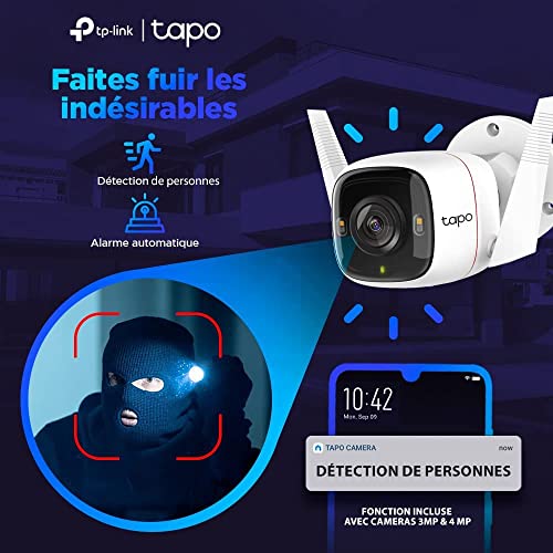 Tapo Caméra Surveillance WiFi extérieur TAPO C310, 2K(3MP), étanche IP66, vision nocturne, Détection de personne et alarme sonore, Compatible avec Alexa et Google Assistant