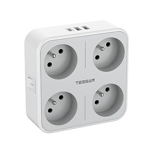 7 en 1 Multiprise Electrique Murale: Cette TESSAN prise usb multiple fonctionne avec toutes les prises françaises mises à la terre. Il suffit de le brancher sur une prise pour l’étendre à une combinaison de 4 ports Schuko et 2 ports USB et 1 port USB C, adaptés au le salon, la chambre et le bureau