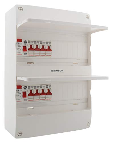 Ce coffret électrique 2 rangées 26 modules pré-équipé blanc est recommandé pour les logements de type T1/T2. Il dispose d’un système d’ouverture et fermeture par 4 vis (1/4 de tour imperdables). Le montage peut se faire sur une Gaine Technique de Logement (GTL) ou directement sur le mur. Il est pourvu de 13 modules par rangée et est compatible avec les GTL de toutes marques. Grâce à l’espace disponible à l’arrière du rail DIN (3cm), le câblage est très accessible. Il est livré avec 8 disjoncteurs + 2 interrupteurs différentiels + 3 borniers Ph/N/T + 2 portes de protection. Certifié NF et CE, garantie 2 ans pièces. Détail des 8 disjoncteurs NF: 3x 10A, 2x 16A, 2x 20A, 1x 32A. Détail des 2 interrupteurs différentiels NF: 1x40A type AC + 1x40A type A. Résistance thermique jusqu’à 650°C, installation des composants par serrage classique à vis. Fonctionne sur 240V~.