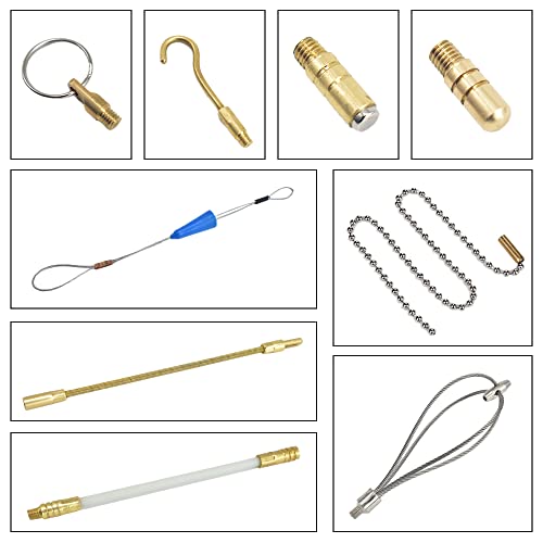 Design : les tiges blanches bien visibles sont simplement vissées ensemble avec des extrémités filetées spéciales, prolongeant ainsi l’outil jusqu’à 4,3 m. Avec un ressort en laiton hautement qualifié qui se plie à n’importe quel angle et une fixation à crochet et à œillet, tirer et pousser des câbles devient un jeu d’enfant.