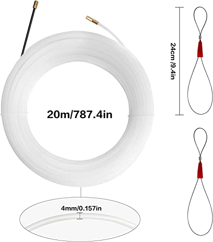 Outil d’installation de câblage parfait: La longueur totale de notre extracteur de fil de ruban de poisson est de 20 m et le diamètre est de 4 mm. Il est suffisamment flexible et peut facilement passer dans les virages, de sorte que vous pouvez rapidement installer des télécommunications, des câbles, un guide de mise à la terre et d’autres câbles sans utiliser d’autres outils. Venez choisir notre enfile-fil à travers le mur !