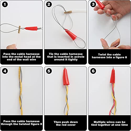 Facile à utiliser: Vous n’avez pas besoin d’acheter d’accessoires supplémentaires, nos extracteurs de câbles comprennent 2 faisceaux de câbles rouges et un fil de verrouillage en métal. Les faisceaux de câbles rouges vous empêchent de vous casser lorsque vous tirez. Tout ce que vous avez à faire est de connecter un côté du fil avec le faisceau de câbles rouge et l’autre côté avec le tire-câble électrique. Ensuite, le fil et le tire-fil peuvent être fermement connectés.